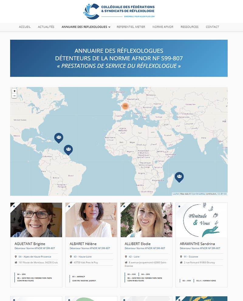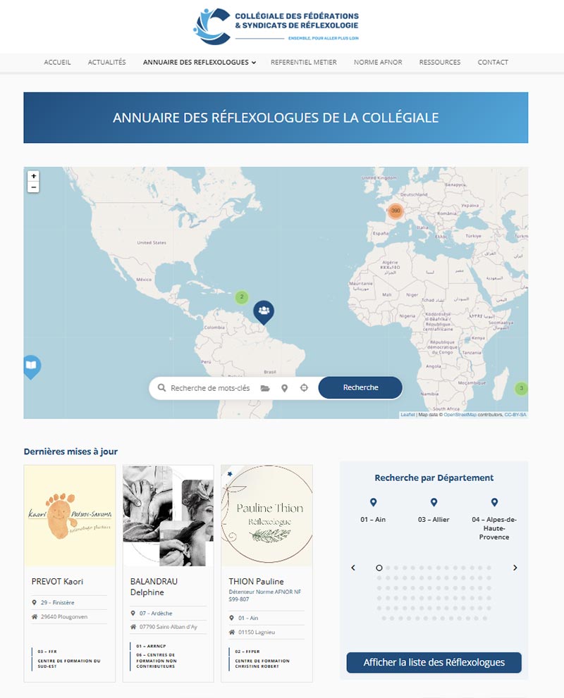 Le site de la Collégiale des Fédérations et des Syndicats de Réflexologie proposent à leurs adhérents un nouvel annuaire interactif.